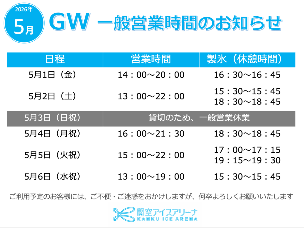 ゴールデンウィーク期間の営業時間ご案内